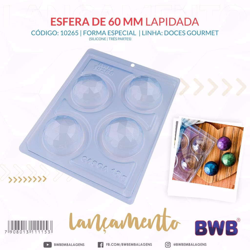 1~4 Forma BWB Esfera 60mm Lapidada,Com Silicone(3 partes)Para Bombons, Confeitaria Natal – Cód. 10265