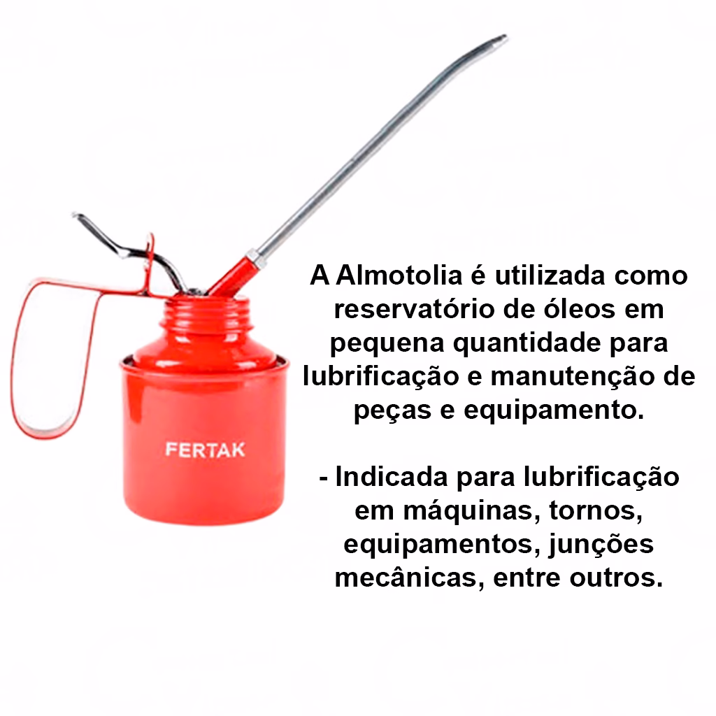 A Almotolia é utilizada como reservatório de óleos em pequena quantidade para lubrificação e manutenção de peças e equipamento.