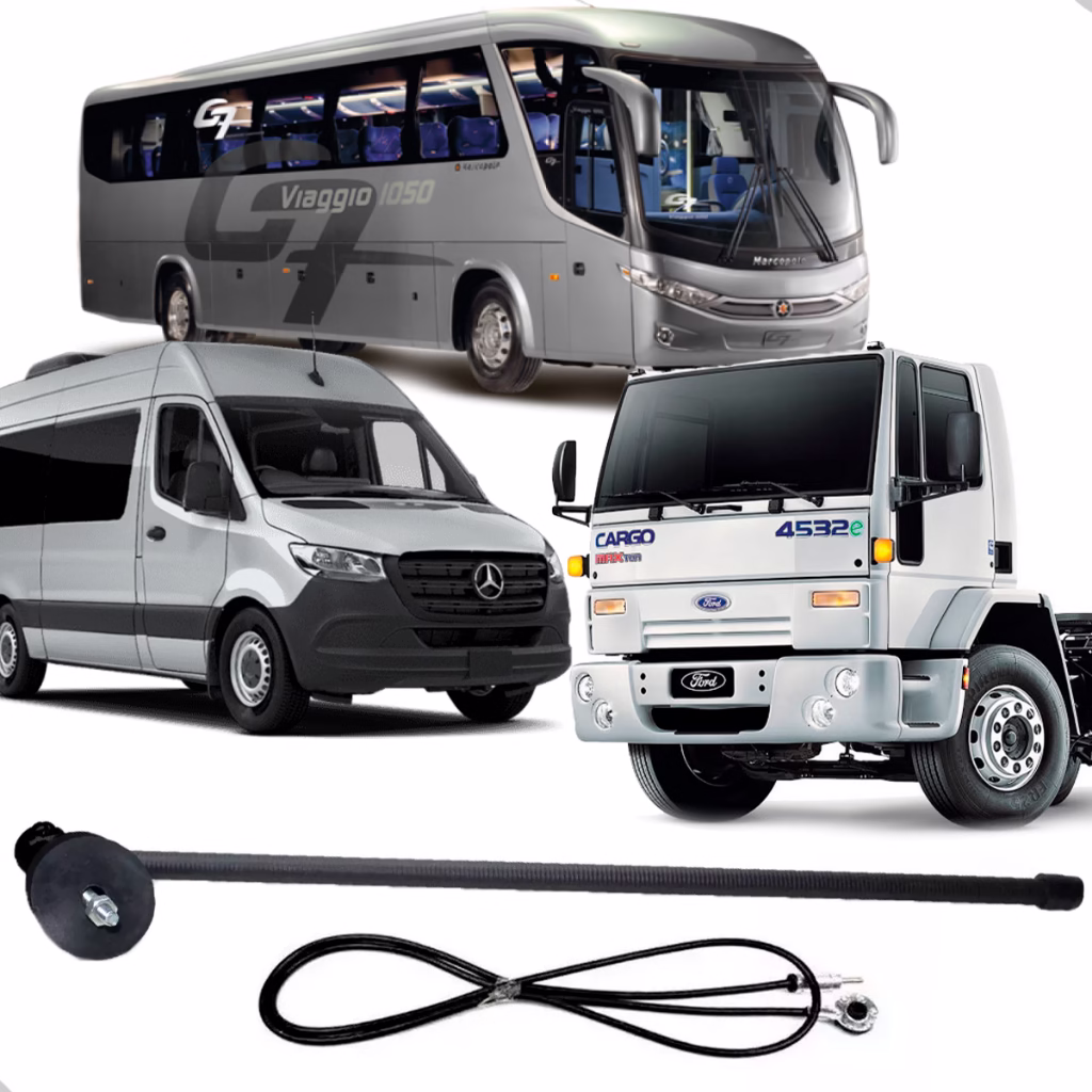 Antena Universal Receptiva AM/FM Flexível Caminhão Compatível c/ MB/Ford Cargo/Marcopolo/Vans