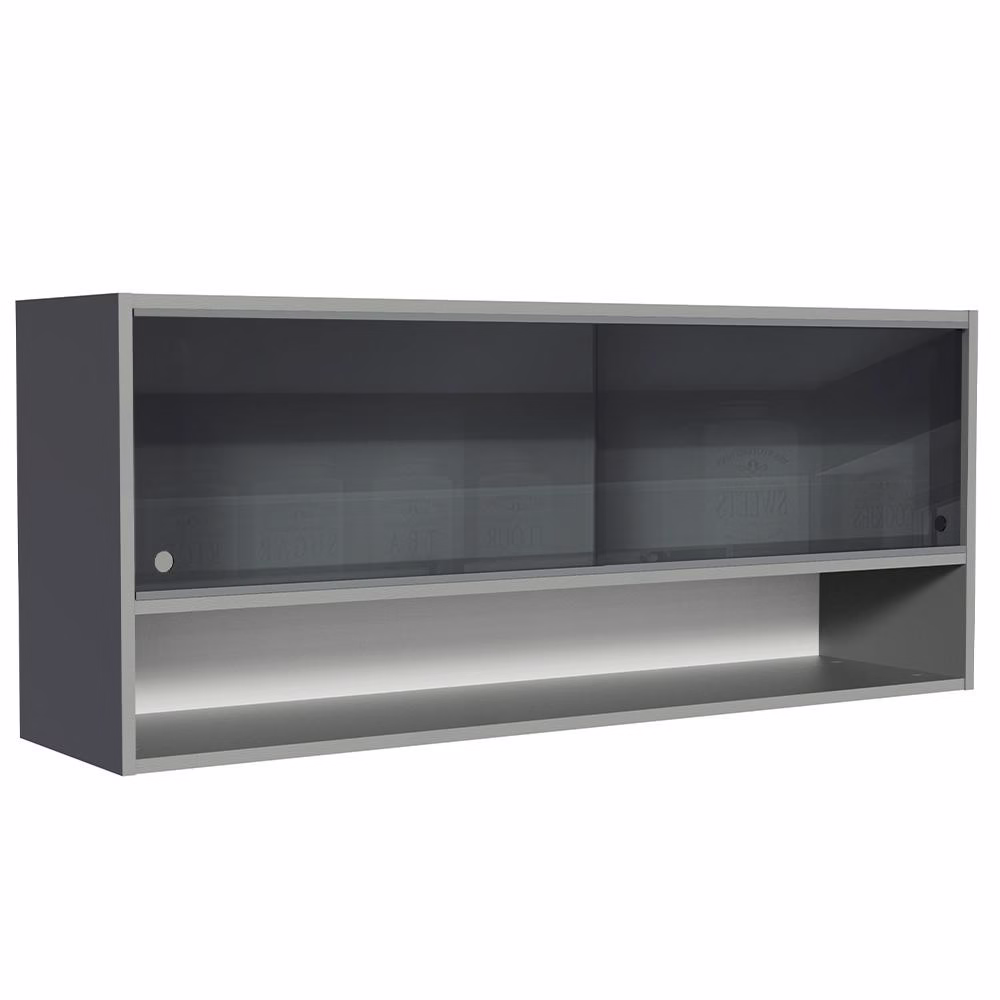 Armário de Cozinha Aéreo 2 Portas de Correr de Vidro Neutral e 1 Nicho Cinza Nice MadesaArmário de Cozinha Aéreo 2 Portas de Correr de Vidro Neutral e 1 Nicho Cinza Nice Madesa
