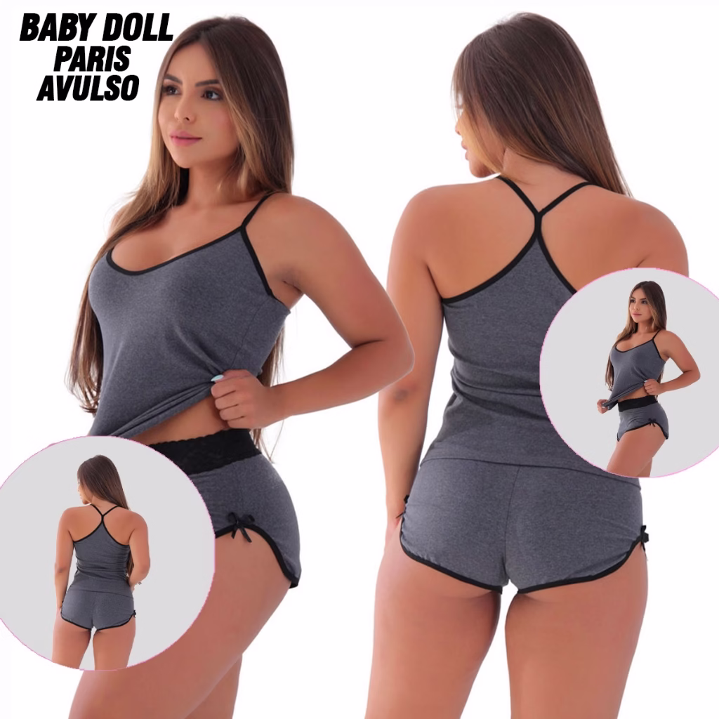 BABY DOLL ALGODÃO PENTADO PARIS, SHORT CINTURA ALTA, TECIDO DE ALGODÃO, IDEAL PARA UMA PERFEITA NOITE DE SONO!