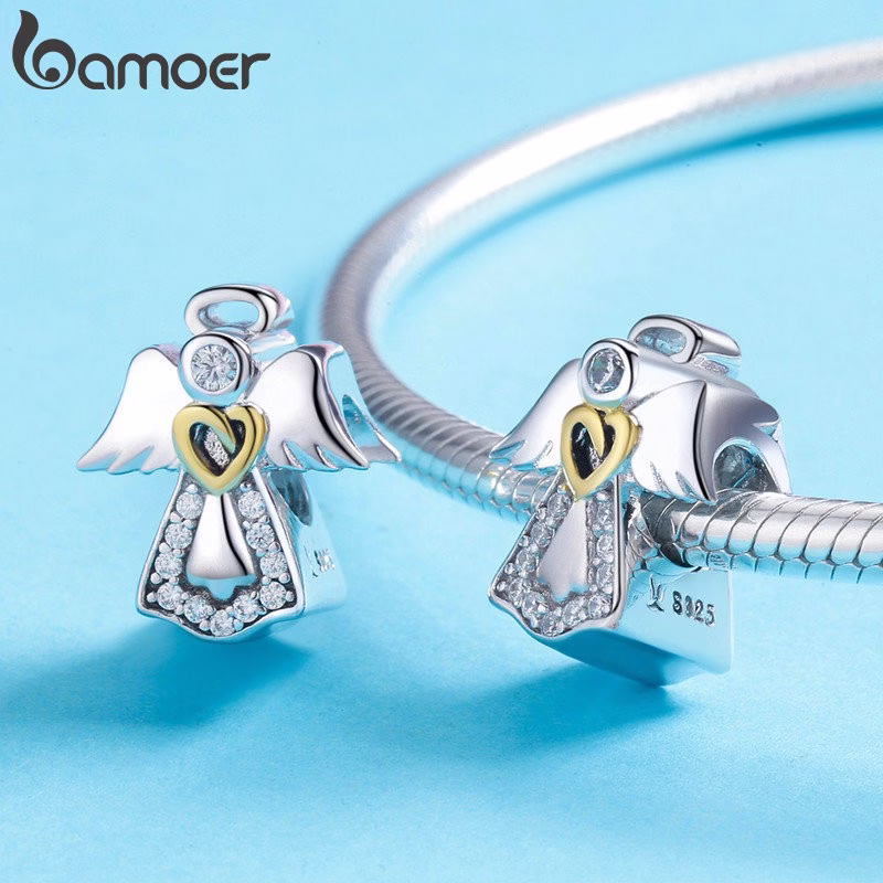 Bamoer O Anjo Da Guarda Pingentes Encantos Fit Pulseiras Colares Mulheres Moda Beads & Jewelry Making Pa5357
