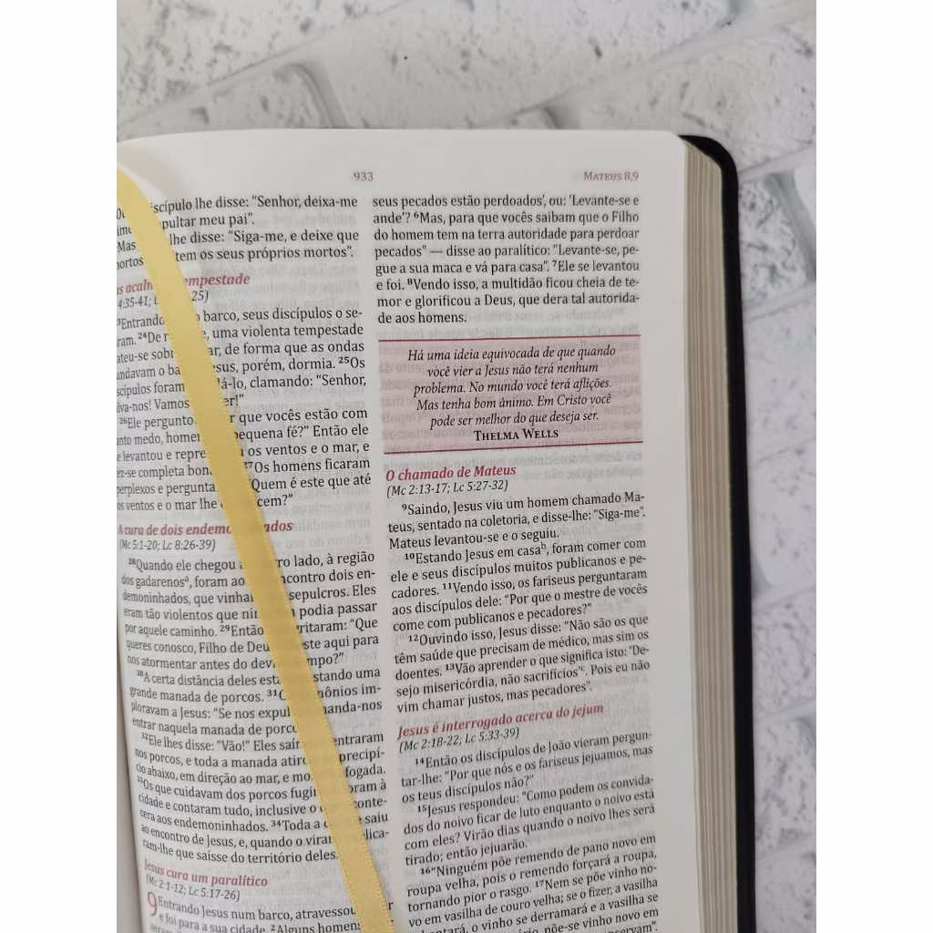 A Bíblia da mulher de fé oferece inspiração e recursos especiais para leitoras em busca de uma comunhão diária com Deus e sua Palavra. Além do texto das Escrituras Sagradas, são 366 devocionais com lições e conselhos valiosos.Nela, você encontrará estudos e notas de autoras mundialmente conhecidas, como Sheila Walsh, MaryGraham e Luci Swindoll. Além de contar com um projeto gráfico em duas cores que facilita a identificação de pontos importantes, ela traz uma edição de luxo em courosoft com costura perimetral que agrega beleza e elegância a essa bíblia.Possui linguagem NVI (Nova Versão Internacional) que é baseada nos seguintes fundamentos: precisão, beleza de estilo, clareza e dignidade, trazendo uma versão ao mesmo tempo fiel e contemporânea.
