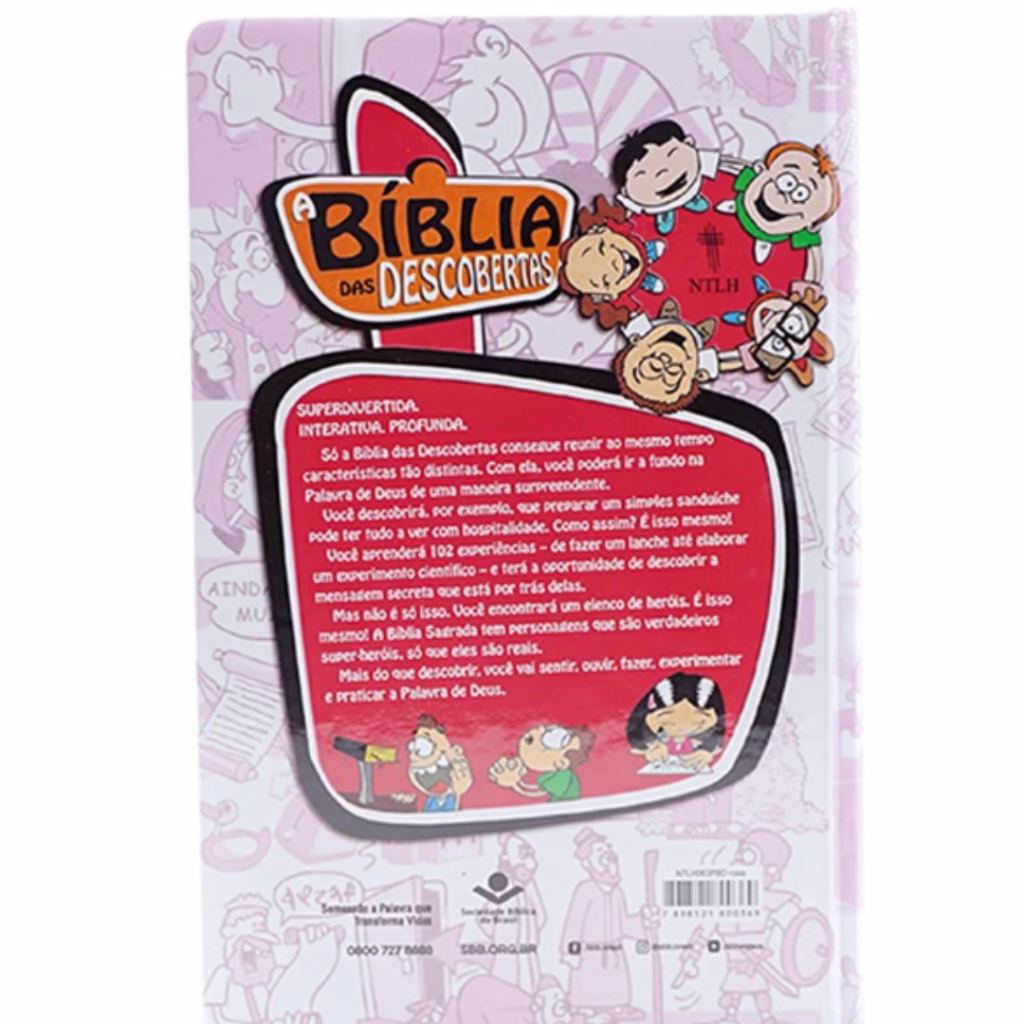 Com esta publicação o público infantojuvenil conseguirá ir fundo na Palavra de Deus de uma maneira surpreendente. O leitor descobrirá, por exemplo, que preparar um simples sanduíche pode ter tudo a ver com hospitalidade. São 102 experiências – de fazer um lanche até elaborar um experimento científico – que oferecem a oportunidade de se descobrir a mensagem secreta que está por trás de cada uma delas. Recursos Texto bíblico: Nova Tradução na Linguagem de Hoje Notas e referências bíblicas Introduções a cada livro bíblico 102 experiências de diversos tipos para fixar o aprendizado da Bíblia“Mensagens secretas”, que mostram a unidade da Bíblia e estimulam a reflexão Biografias dos principais personagens bíblicosTextos-chave que ajudam no aprendizado de passagens importantes da Bíblia Curiosidades que ajudam na compreensão da história bíblica“Conexão Jesus”, quadros que ajudam o leitor a ligar o conteúdo das histórias bíblicas com o centro da Bíblia, Jesus Cristo Você sabia? *Perguntas mais frequentes sobre a Bíblia *Tabelas e mais tabelas *Onde procurar na minha Bíblia *Roteiro pessoal para leitura da Bíblia *Meditações em família *Vocabulário *O plano mestre de Deus *Impressão em duas cores