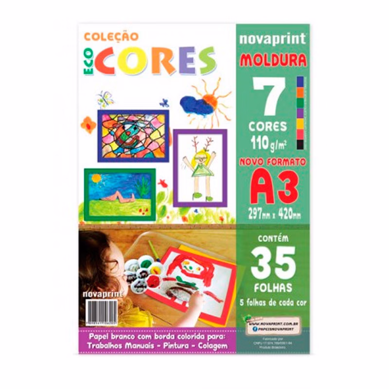 Bloco ecocores com moldura 110g – 297x420mm – 35 folhas com 7 cores – Novaprint