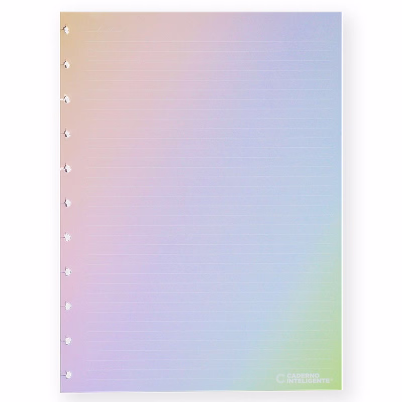 Em um degradê de cores, o refil rainbow é a mistura da beleza das cores do arco-íris e os sentimentos bons que cada uma delas carregam em si, com a funcionalidade das linhas brancas que suportam suas anotações, lettering, desenhos ou rabiscos sem as distrações das linhas escuras convencionais. Este refil é a escolha perfeita para deixar o seu Caderno Inteligente ainda mais colorido, personalizado e cheio de estilo.
