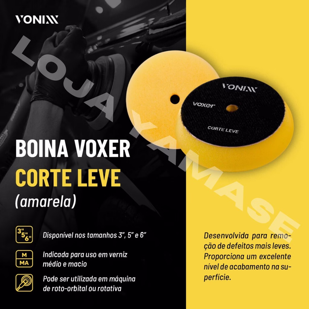Boina Voxer Corte Leve foi desenvolvida para remoção de defeitos mais leves. Proporciona um excelente nível de acabamento na superfície. Pode ser utilizada em máquina de roto-orbital ou rotativa.