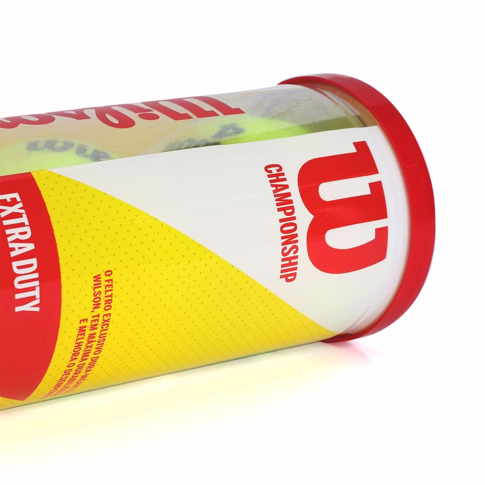 – Detalhamento: Tubo com 3 bolas, escrita Wilson 4 na bola, serve para todos os tipos de quadra, bola aprovada pela Federação Internacional de Tênis;