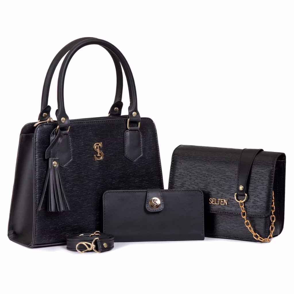 A Bolsa Maior do kit contém, um design atemporal, que se encaixa em muitas ocasiões. Ela é espaçosa e muito útil para o dia a dia, estilo clean, com toque atual. bolsa menor conta com o fechamento em botão magnético, com o espaço interno ideal para seus itens essenciais, com bolso interno com e sem zíper que deixa tudo mais organizado, além do lindo detalhe em fivela na sua tampa.
