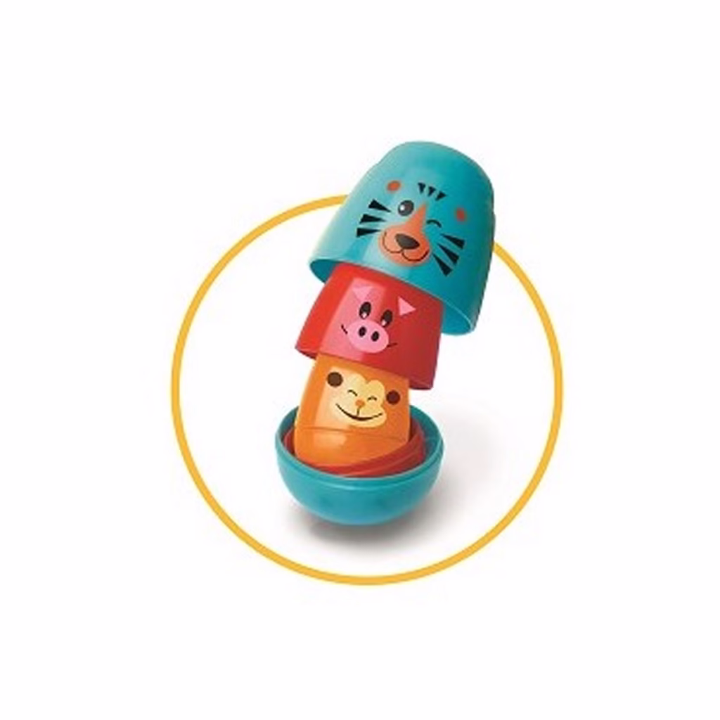 Matrioska da Elka é pura diversão, a cada abertura a criança descobre um animal, são empilháveis, possuem a base arredondada, coloridas e fáceis de encaixar.