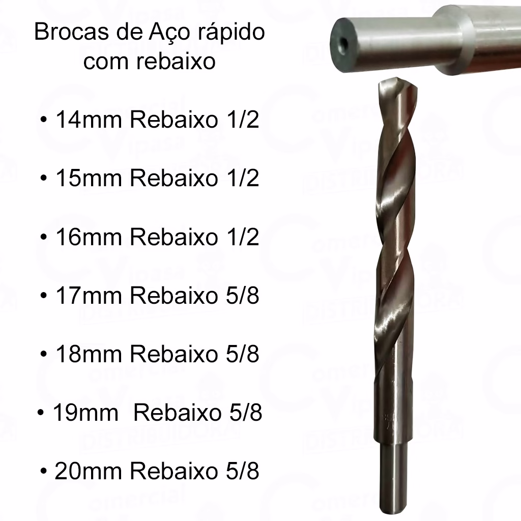 Broca Aço Rápido: 17mm Com Rebaixo 5/8