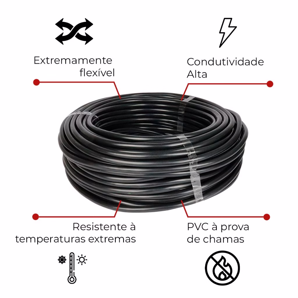 ✅Segurança: Isolamento duplo em PVC que protege contra curtos-circuitos e interferências externas.