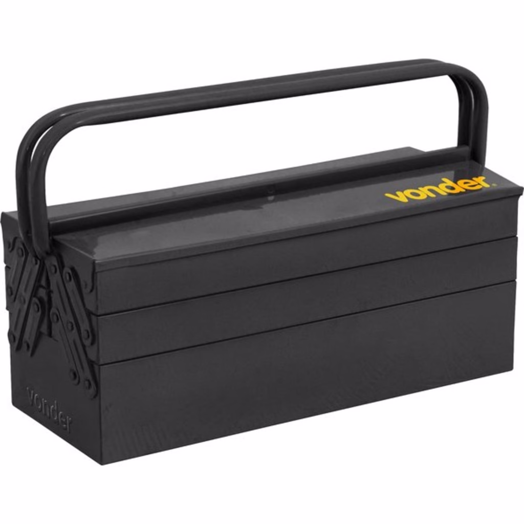Possui 5 gavetas, uma fixa e quatro articuladas, alça reforçada e porta cadeado.