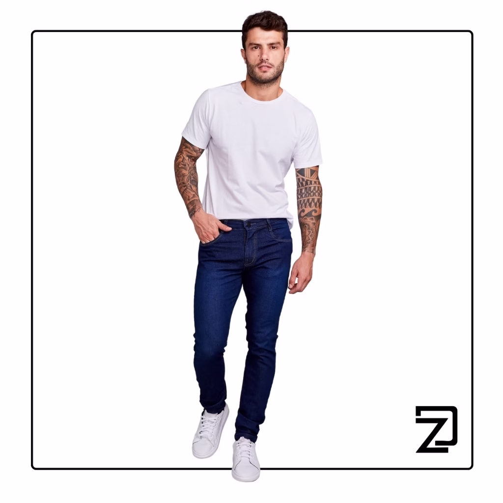 Calça Jeans Skinny Masculina, desenvolvida em jeans com leve elasticidade. Adaptável a todos os estilos, essa calça se destaca pelo equilíbrio entre a ousadia da skinny e a tradicional. A peça possui cintura média, três bolsos frontais e dois posteriores. O cós tem passantes e fechamento com botão e zíper. Ideal para curtir a estação com muito conforto.