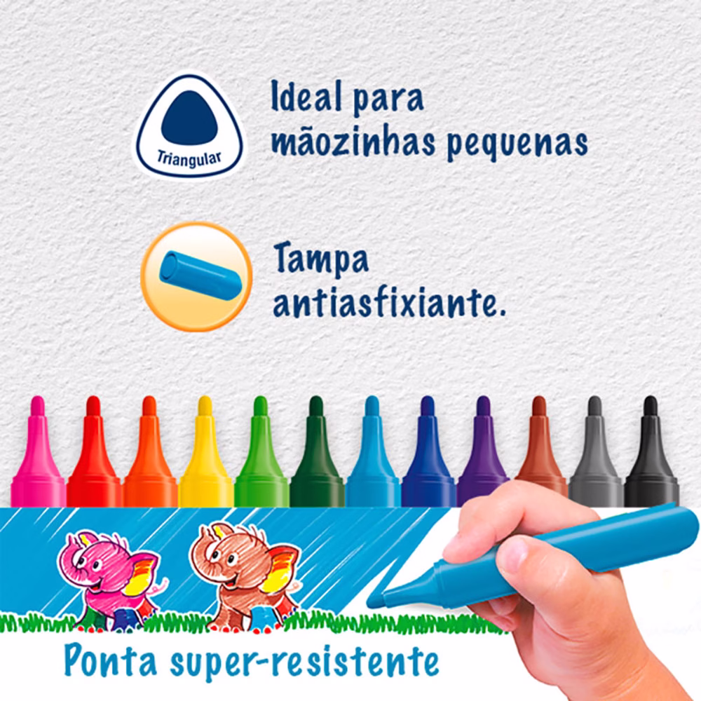 – Jumbo triangular: formato ergonômico ideal para mãozinhas pequenas.