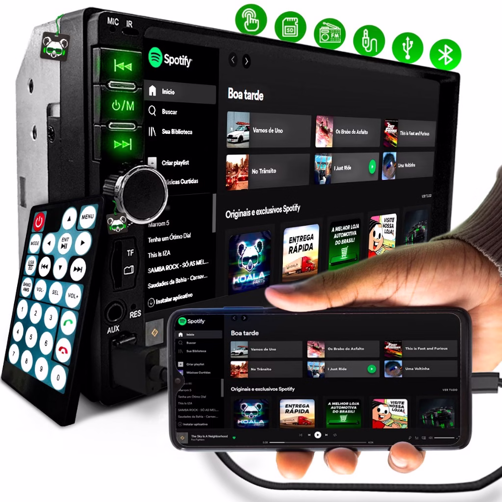 Simplifique sua vida com a Central Multimídia que reúne todas as funcionalidades que você precisa! Além do espelhamento via cabo em uma tela de 7 polegadas Touch Screen, contém função bluetooth para você ligar e receber ligações enquanto dirige. Possui também espaço para cartão SD e USB, grava mais de 20 estações de rádio e tem botões multicoloridos (opção de 7 cores).
