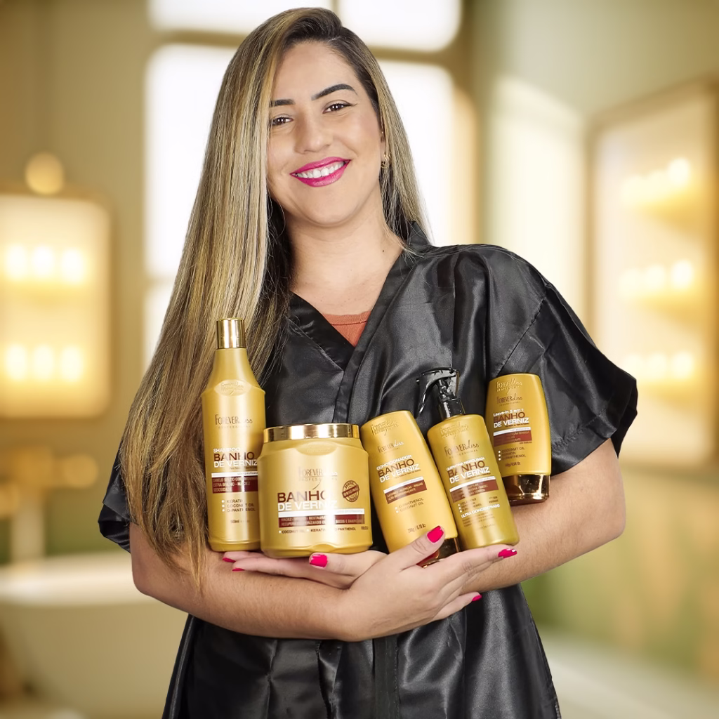 Para um melhor resultado utilize a Linha completa Banho de Verniz Forever Liss.