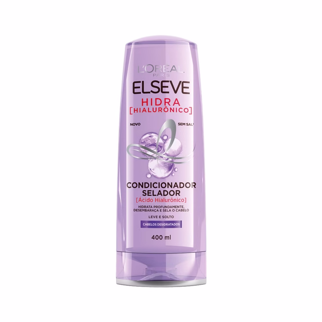 O Condicionador Selador Elseve Hidra Hialurônico, desembaraça os fios instantaneamente, controla o frizz e sela as cutículas para cabelos hidratados, soltos e cheios de movimento.