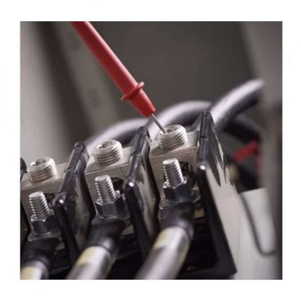 O TL75 possui um par (vermelho e preto) de sondas com pegadores confortáveis isolados com PVC e cabos de teste com plugues em ângulo reto tipo blindados.