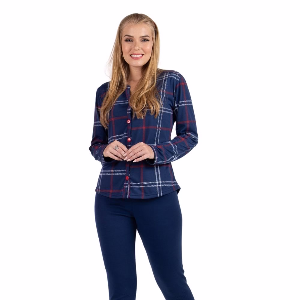 Conjunto Pijama Feminino Aberto Camisa e Calca Longa Xadrez Com Botoes Confortavel Para o InvernoConjunto Pijama Feminino Aberto Camisa e Calca Longa Xadrez Com Botoes Confortavel Para o Inverno