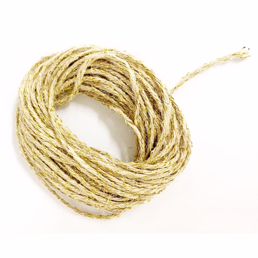 Cordão de Juta com Fio Dourado – 10 metros – EcoArt – Rizzo Distribuidora