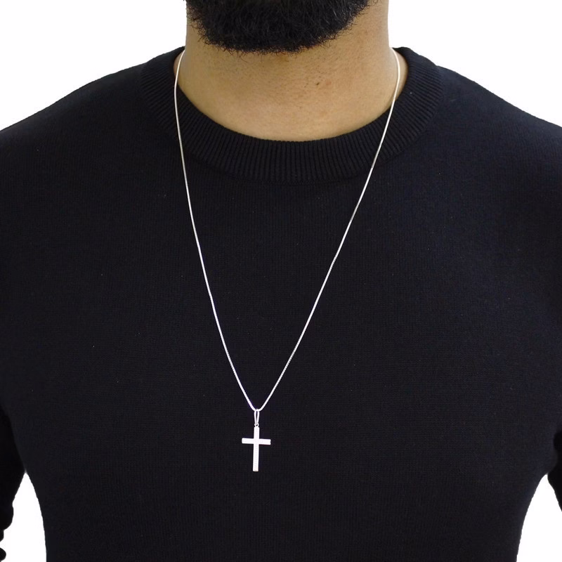 Corrente cordão de prata 925 Masculina Veneziana 70cm Pingente cruz pontilhadaCorrente cordão de prata 925 Masculina Veneziana 70cm Pingente cruz pontilhada