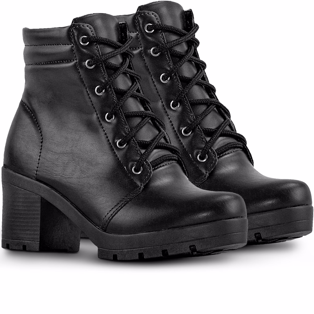 Coturno Feminino com cano curto e salto grosso, confeccionada em sintético ou verniz, super confortável e com um design moderno e estiloso.