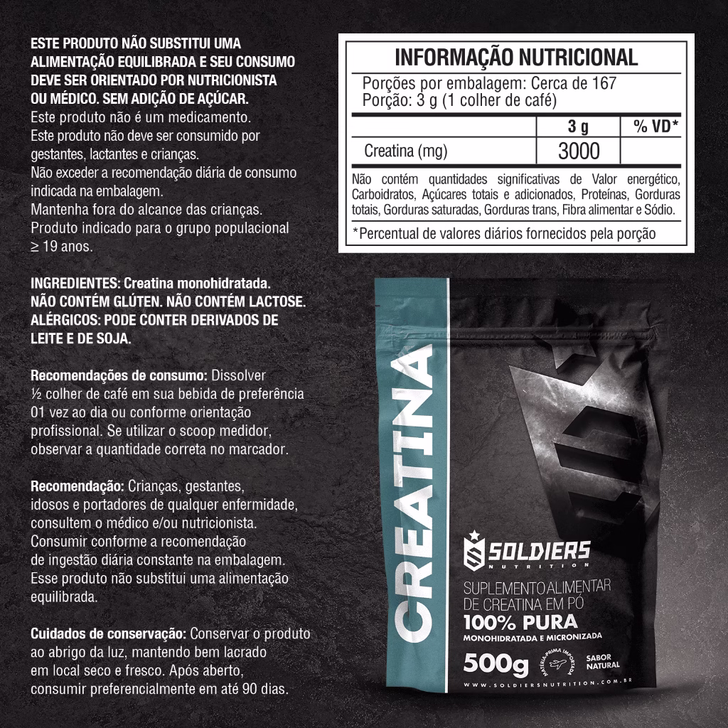 Modo de Preparo: Diluir 3g (1 colher dosadora) da creatina em 200ml de água ou bebida de sua preferência.