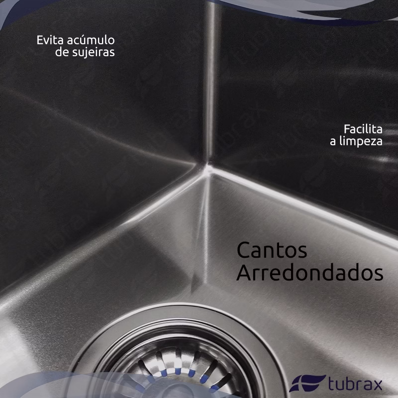 Cantos angulados não permitem que a sujeira se acumule. Pintura externa e manta emborrachada conta ruídos é um diferencial das Cubas Tubrax.