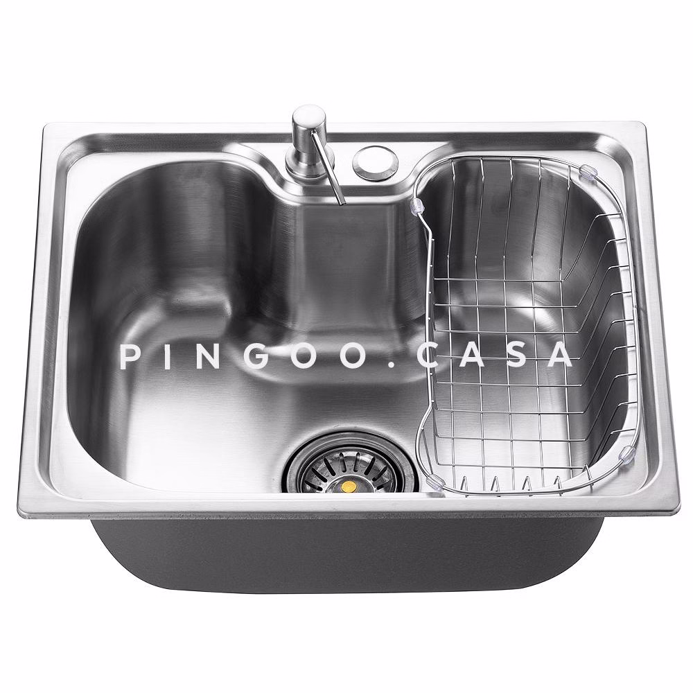 Um dos ambientes da casa mais importantes, è a cozinha. Um item essencial que merece ser muito bem escolhido è a cuba, que enriquece e deixa a decoraáo do ambiente mais atraente e elegante.a cuba gourmet inox nawa, è ideal para vocí que busca sofisticaáo e praticidade no dia a dia, especialmente para vocí que busca conforto para lavar a louáa, se torna indispensvel. Com isso, vocí economiza no apenas tempo, mas gua e detergente.ela conta com local para dosador de detergente, para aprimorar a organizaáo da pia e praticidade na limpeza de alimentos e louáas. Com borracha anti ruìdo, vocí evita que o fluxo de gua ecoe na cuba, diminuindo o barulho durante o uso.outro ponto que merece destaque è a beleza e estètica que o acompanha, o acabamento em aáo inox escovado e acetinado è resistente e fcil de limpar, evitando a corroso, conservando sua beleza por muito mais tempo.especificaáies:marca: Pingoomedidas: verificar imagens do anncio.material predominante: aáo inox 201espessura: 0,8mmacabamento: escovado e acetinadoaplicaáo: embutir ou sobreporposiáo da vlvula: centralizadafuraáo da vlvula: 4.1/2’furo da torneira: 3,5 cm de dimetrofuro do dosador: 2,5 cm de dimetrovlvula escape/ladro: noindicaáo: cozinhaaceita triturador: simanti-ruìdo: sim (fundo)acompanha acessrios: sim recomendaáies de uso: esta peáa contèm bordas cortantes. Manusear com cuidado. No usar cido muritico, gua sanitria ou qualquer outro solvente para lavar objetos na pia. Na reforma ou construáo, proteger a pia para no deixar sobre a mesma p de cimento ou gesso. Enxaguar e secar bem a peáa aps o uso. Nunca deixar objetos metlicos sobre a peáa por perìodos muito longos, para evitar a corroso. Para manter o brilho da sua pia, recomendamos o uso da pasta para polir e remover manchas em superfìcies de aáo inoxidvel.misturador monocomando potengiespecificaes:marca: Pingoodimensies: verificar nas imagens do anncio.material predominante: aáo inox 304acabamento: escovadopresso: 5 a 40 mcamisturador: sim (gua quente/fria) *pode utilizar somente com gua friasistema: monocomandobica giratria: sim (360 graus)arejador: articulvelcartucho cermico: simextensìvel: noentrada filtro: noaplicaáo: cozinhainstalaáo: bancadafuro da bancada: 3,5 cmconexo de entrada: 1/2’itens inclusos:cuba – cesto escorredor – dosador de detergente 300 ml – vlvula de escoamento – kit acessrios de instalaáo – placa de reforáo para torneiras gourmet – par de flexìveis de aáo tranáado de 50 cm – anèis de vedaáo – sistema de fixaáo – misturador moncomando potengi.