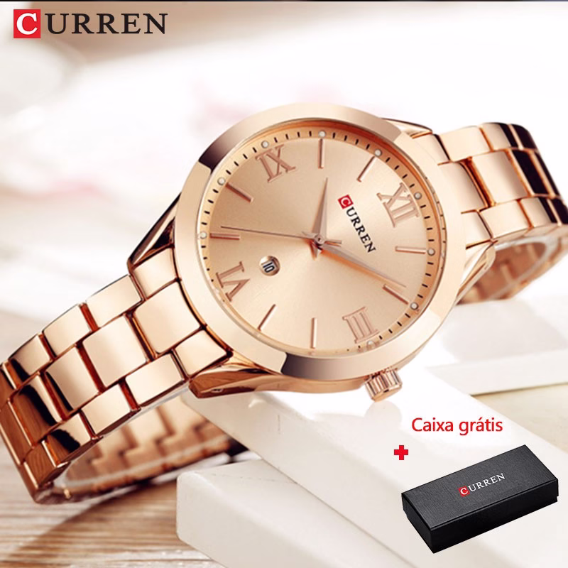 Curren Relógio Das Mulheres Top Marca De Quartzo Em Aço Inoxidável De 9007s