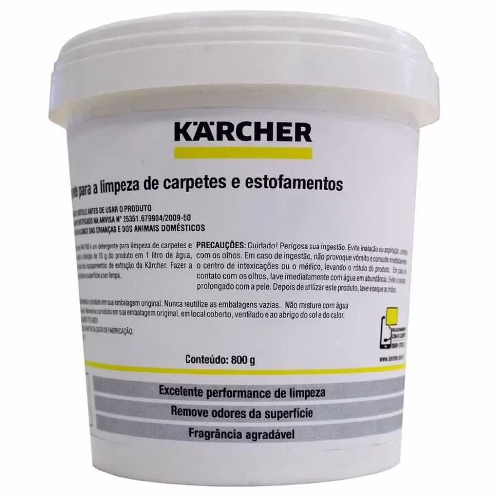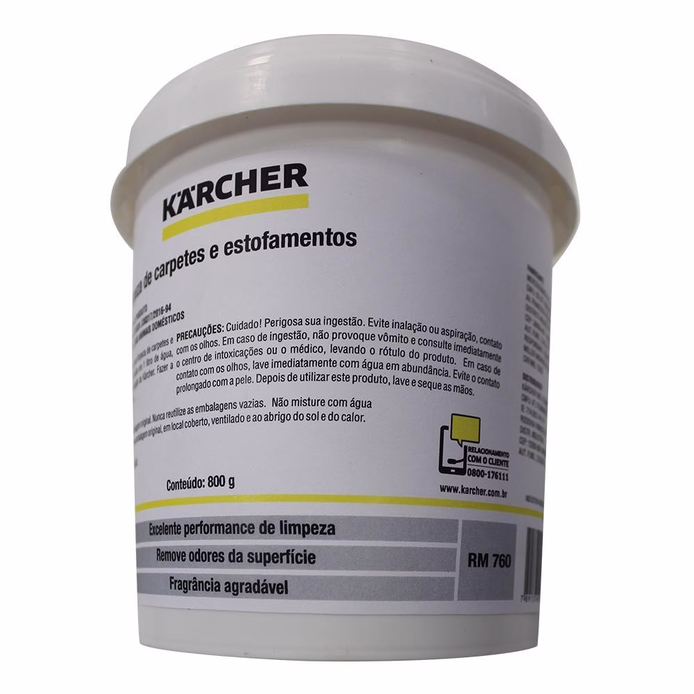 O Detergente RM760 é um produto em pó, recomendado para uso com as extratoras Karcher