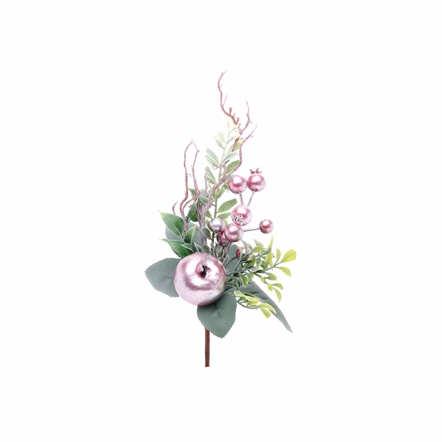 Enfeite de Natal Pick Folhas & Frutas – Rose & Verde – Delicata – 1 UN – Cromus – Rizzo