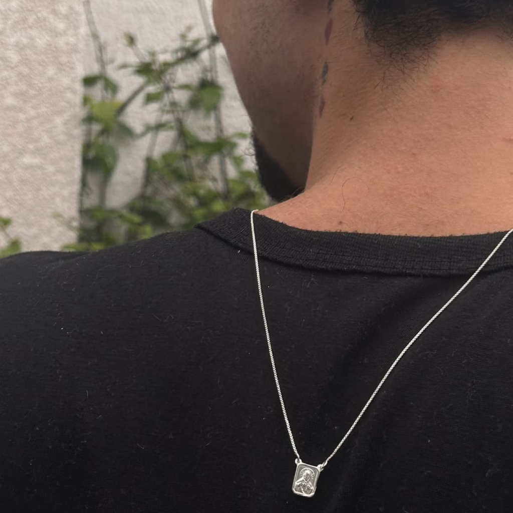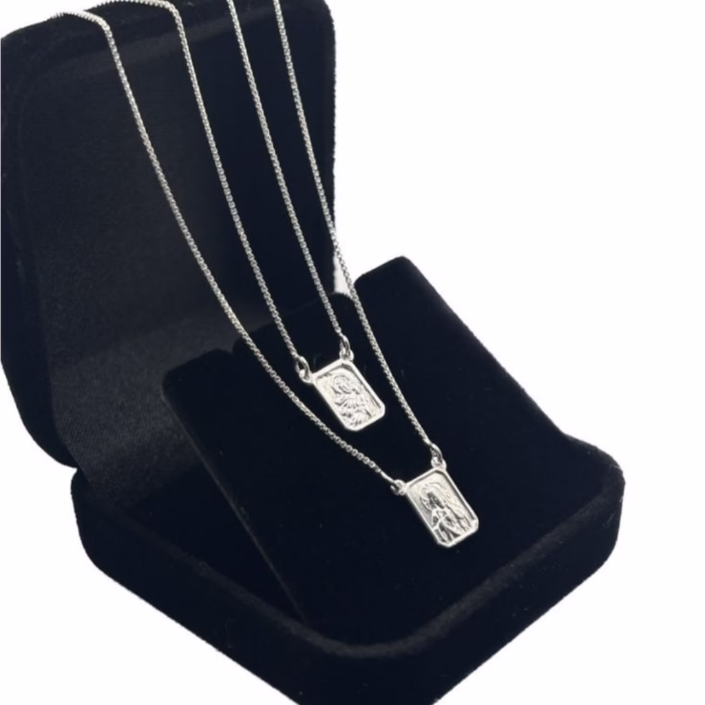 Escapulário Masculino Sagrado Coração e Nossa Senhora do Carmo em Prata 925