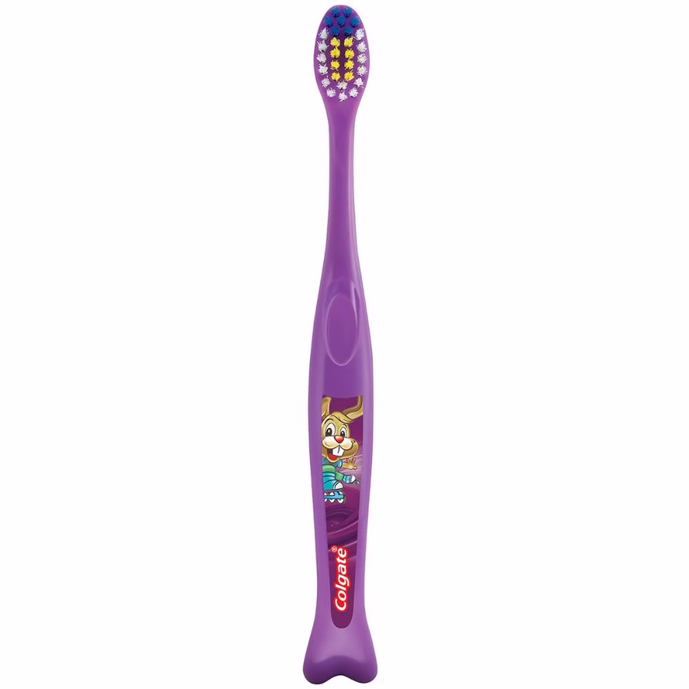 Ideal para crianças acima de 5 anos pois não atrapalha na formação dos dentes. Ponta limpadora para limpar os dentes posteriores Limpador de língua suave na parte de trás da Cabeça para incentivar bons hábitos de higiene bucal cedo Base de sucção para que a escova fique em pé Cerdas coloridas que indicam a quantidade recomendada de creme dental Cores sortidas