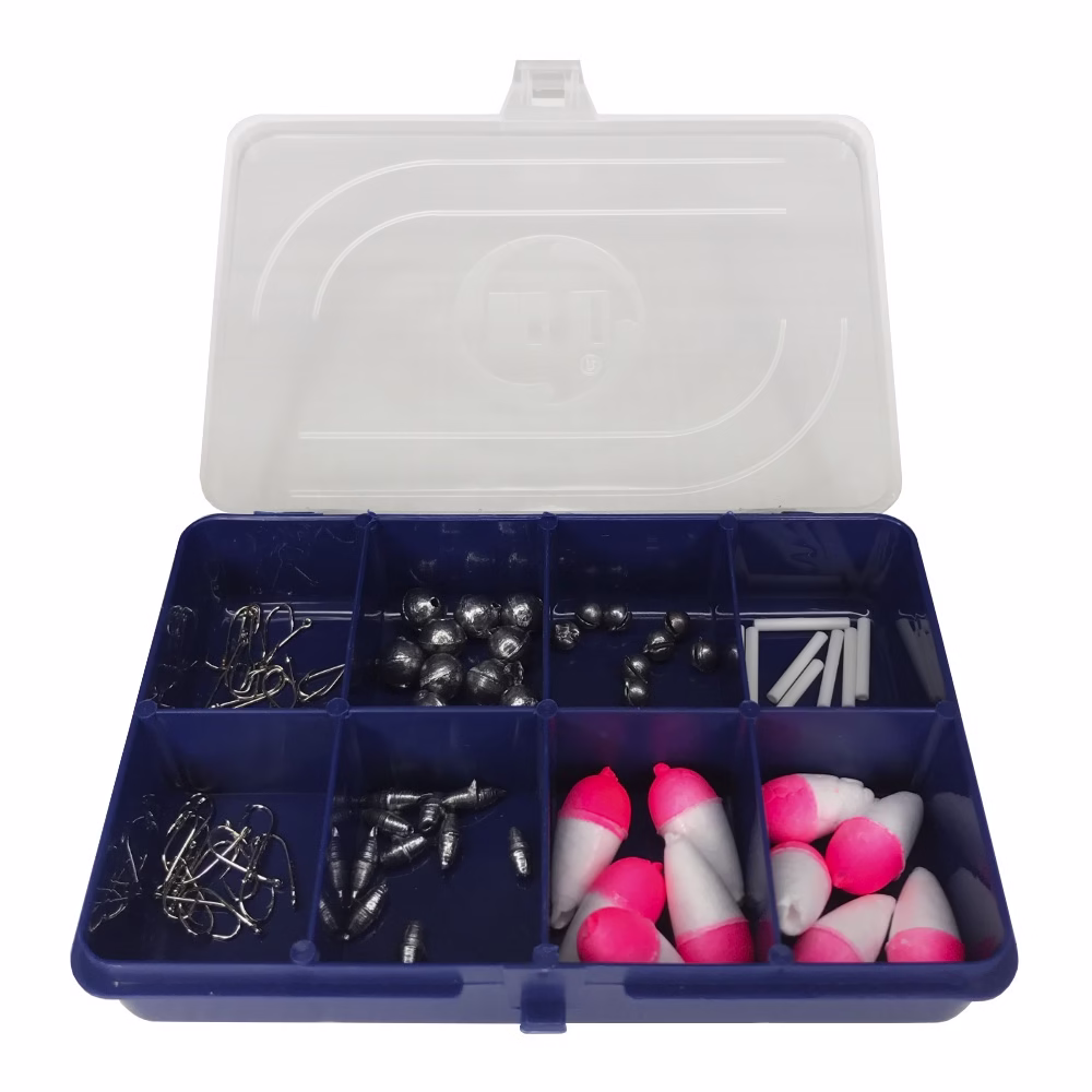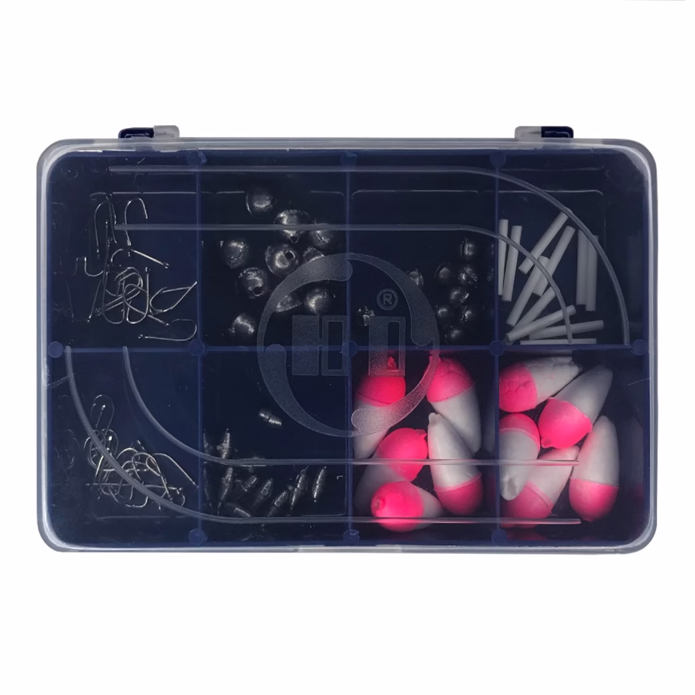 Acompanha um estojo organizador 12cm X 8cm, para que você possa guardar os anzóis, chumbada e bóia.