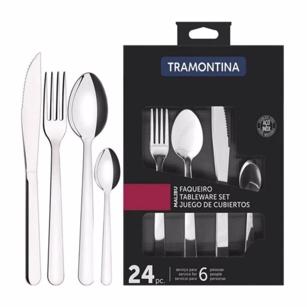 Impressione seus convidados com o Faqueiro Tramontina Malibu em Aço Inox Liso 24 Peças!