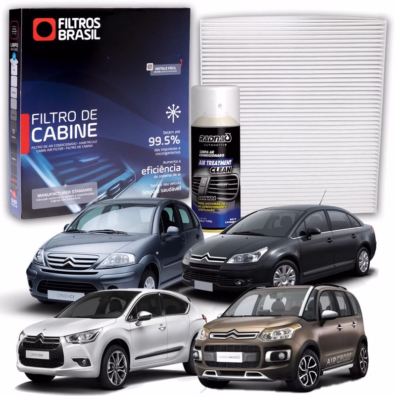 Filtro da Cabine Ar Condicionado pra para CITROEN Aircross C3 GLX C3 Picasso C4 GLX C4 Lounge C4 Pallas C4 Turbo DS4 Peugeot 307 308 408 508 Volvo SÉRIE FH FM + Higienizador Limpa Ar Condicionado Automotivo Tipo Granada