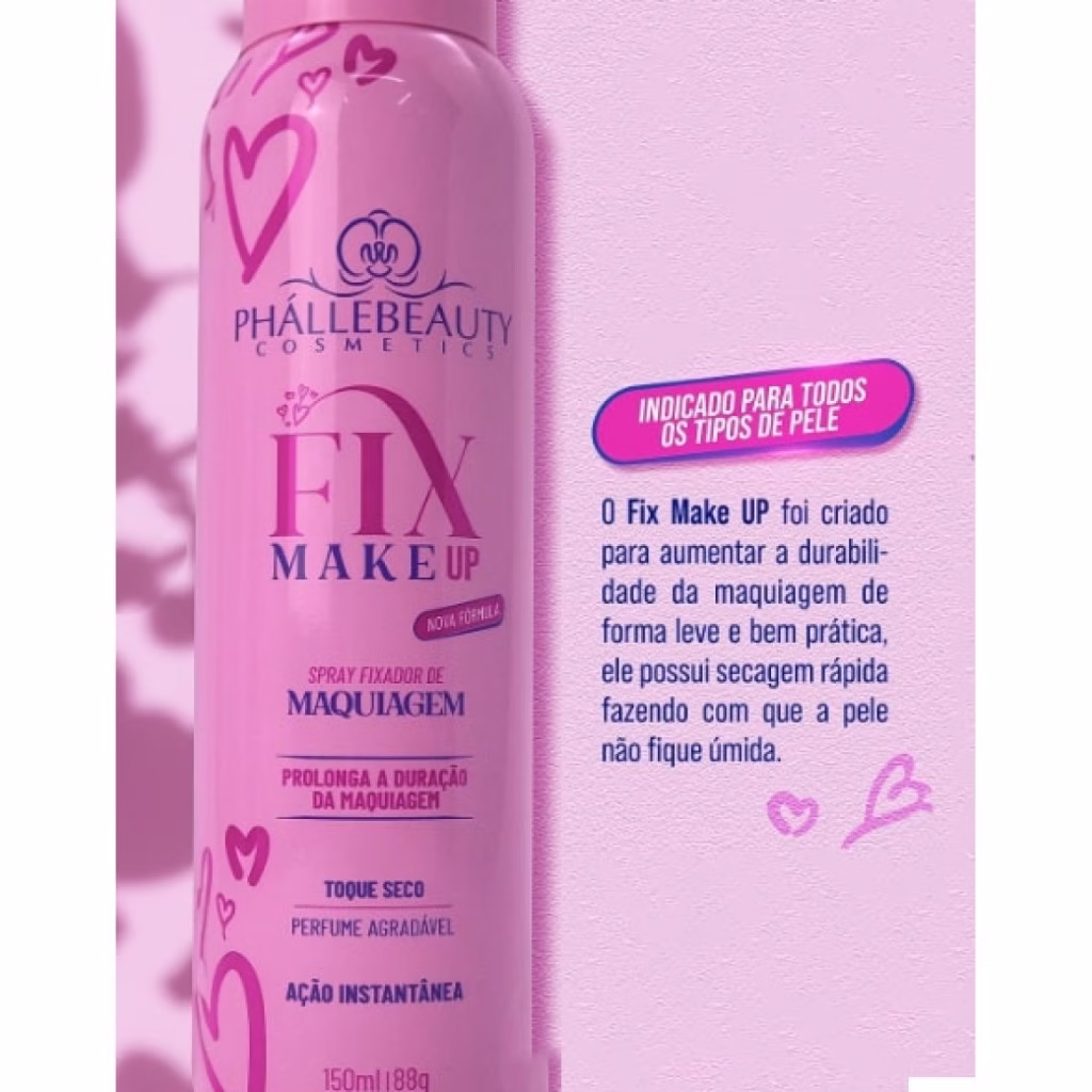 O Fixador de Maquiagem Fix Makeup da PhálleBeauty prolonga a duração da maquiagem, deixando uma sensação refrescante. Indicado para todos os tipos de pele, tem formulação leve, de fácil remoção e secagem rápida