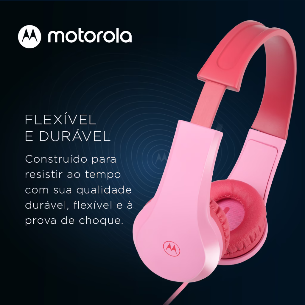 Fone De Ouvido Motorola Moto JR 200 Kids, Isolamento de ruido - RosaFone De Ouvido Motorola Moto JR 200 Kids, Isolamento de ruido – Rosa