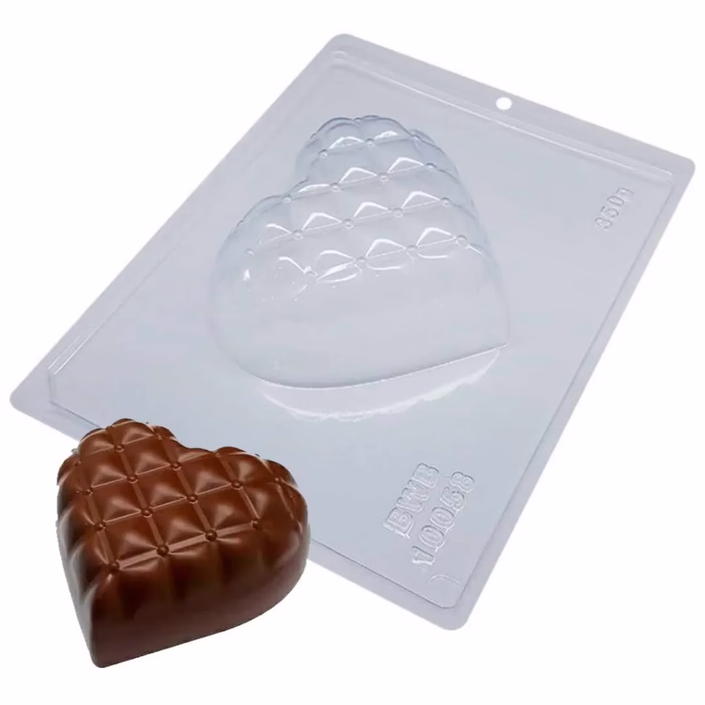 Forma especial com silicone (3 partes), ideal para produção de chocolates com muito mais praticidade e precisão.