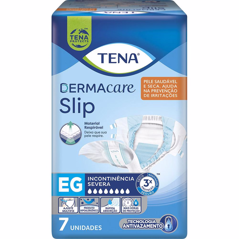 Fralda TENA Dermacare possui dupla camada e um núcleo de alta absorção que rapidamente retém a urina promovendo segurança em um produto hipoalergênico.