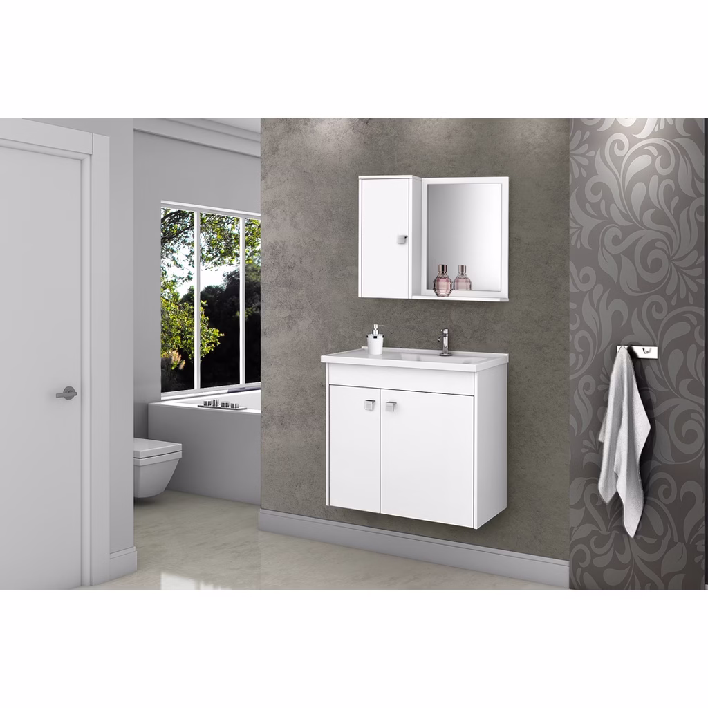 Esse incrível e lindo conjunto da gabinete para banheiro Munique, composto pelo gabinete/armário mais a espelheira com armarinho, mais a cuba retangular irá conquistar você e toda a sua família.