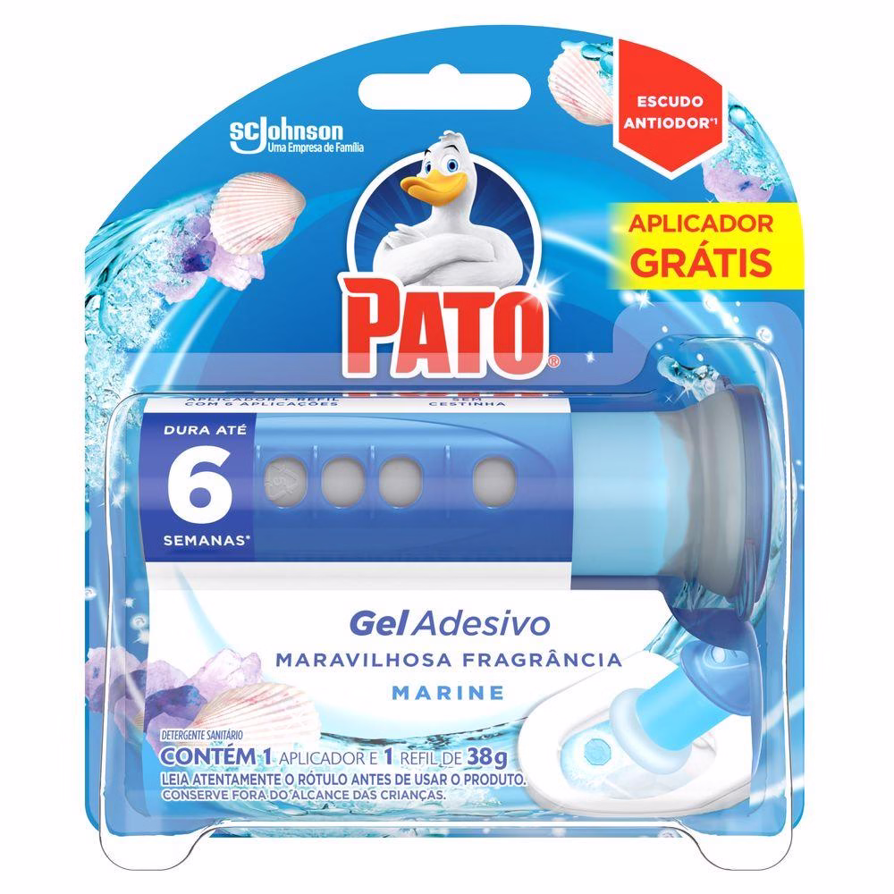 Pato Gel Adesivo é uma solução prática e higiênica que possui aplicador para evitar que o consumidor encoste no vaso sanitário e fórmula com escudo de proteção anti-manchas. Disponível nas fragrâncias regulares: Marine, Lavanda, Citrus.
