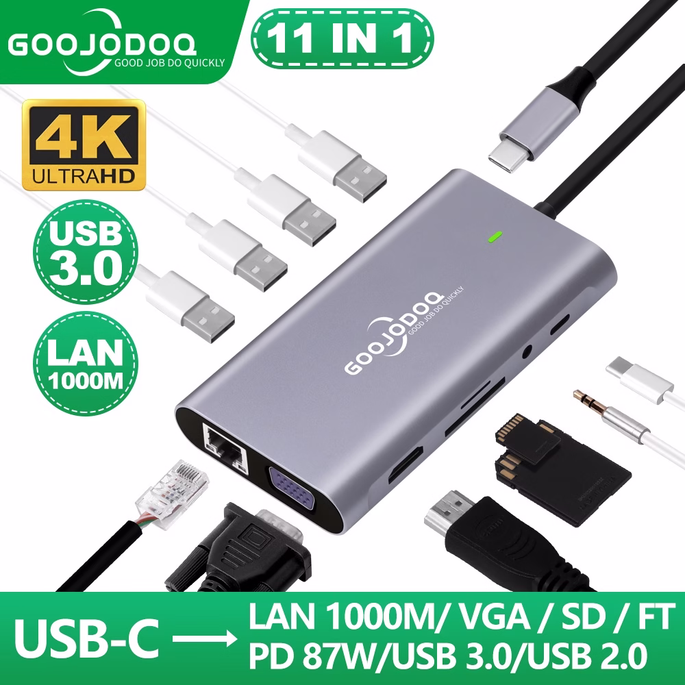 GOOJODOQ USB C hub 10 em 1 MB Adaptador tablet Laptop Tipo C Display Port Para HDMI 4K RJ 45 Cabo VGA PD 100W 3.5mm SD Card TF Card 3 PortGOOJODOQ USB C hub 10 em 1 MB Adaptador tablet Laptop Tipo C Display Port Para HDMI 4K RJ 45 Cabo VGA PD 100W 3.5mm SD Card TF Card 3 Port