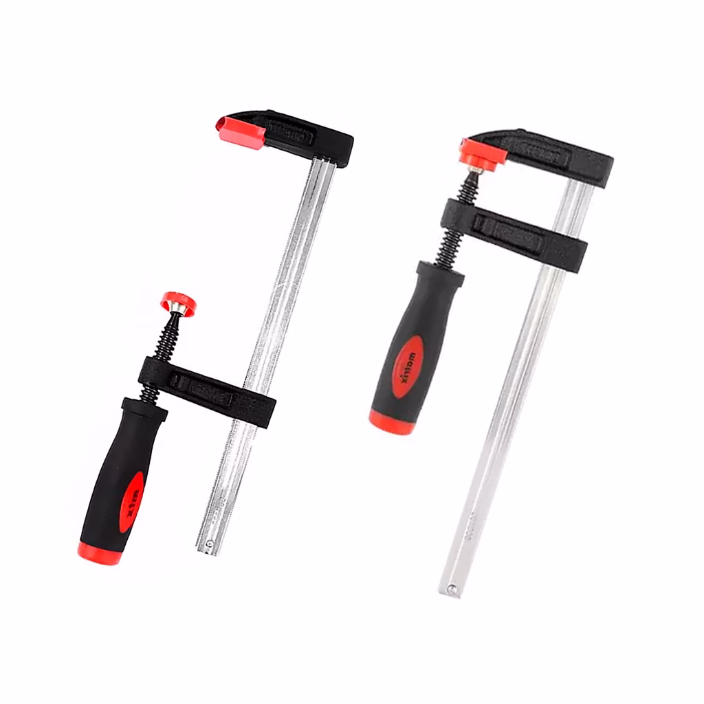 Grampo sargento é ideal para fixação de peças feitas de vários materiais durante o processo de montagem. Um dos suportes é montado na guia fixa. O outro se move para ajustar o aperto e está equipado com um parafuso para fixação. As garras dos suportes são revestidas com plásticos para proteção dos objetos que estão sendo processados contra danos. É equipado com um cabo de aperto emborrachado ergonômico de dois componentes, proporcionando maior conforto na utilização.