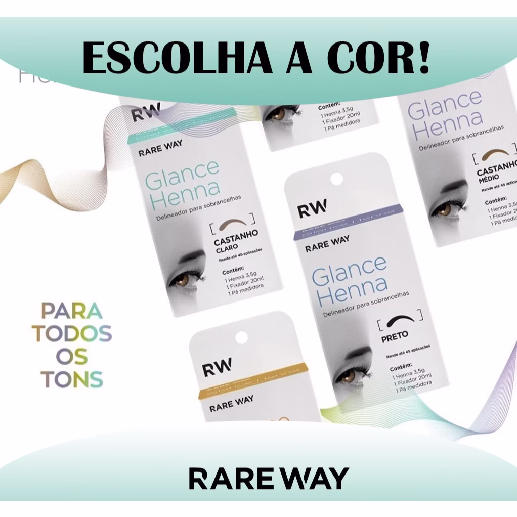 Transforme olhares com a Glance Henna, importada da Índia, fácil de aplicar, com excelente durabilidade e fixação. Ela camufla imperfeições e falhas, realçando sobrancelhas naturalmente. Uma cor exclusiva Rare Way.