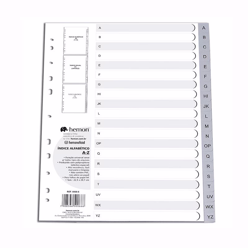 Índice alfabético A4 A/Z 0066-6 Cinza – Hemon