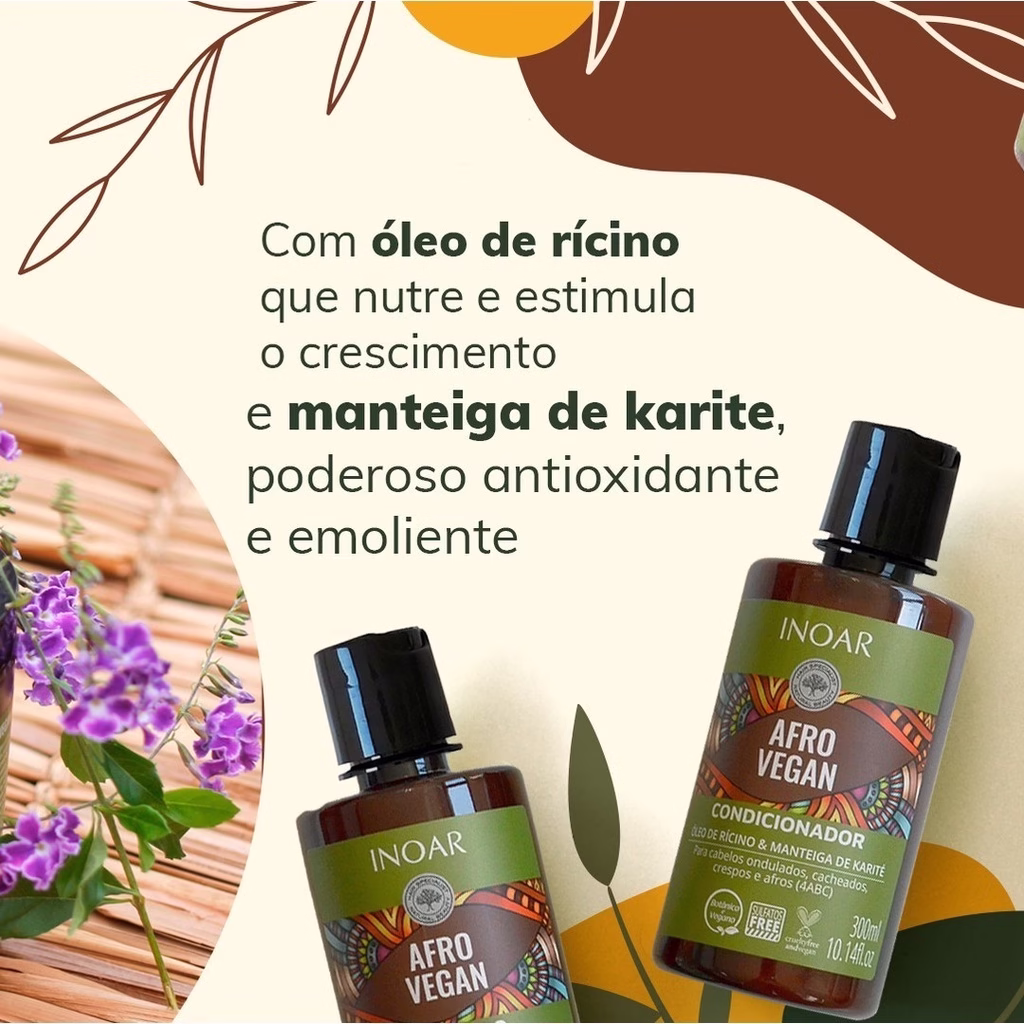 Ativador de Cachos Afro Vegan Inoar estimula o crescimento do cabelo e sela as cutículas para manter o aspecto de sedosidade e brilho.100% Vegano.