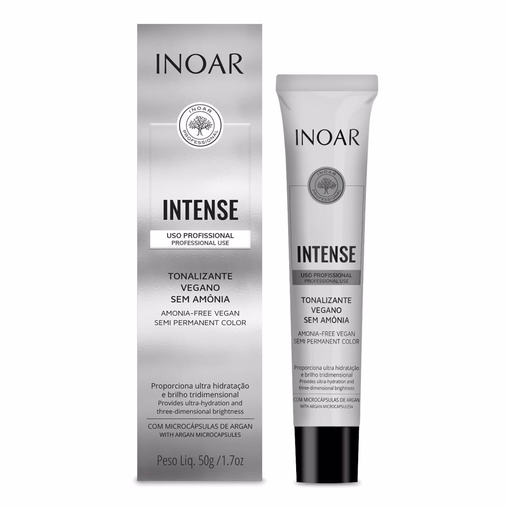 Tonalizante em creme para todos os tipos de cabelo. Tonalizante Inoar Intense com coloração semipermanente sem amônia, colore e hidrata.